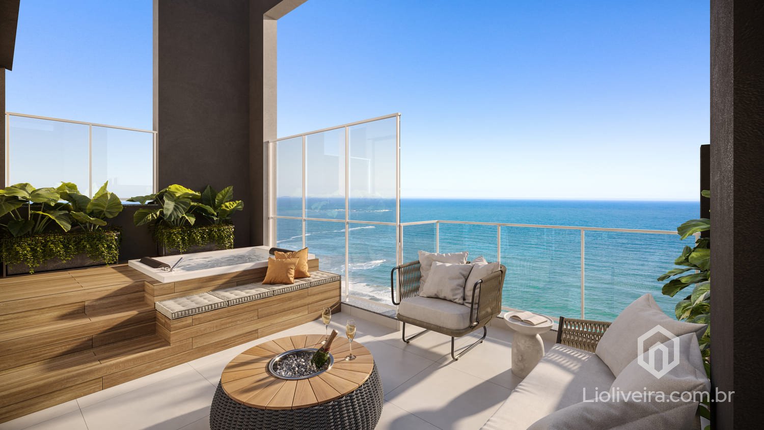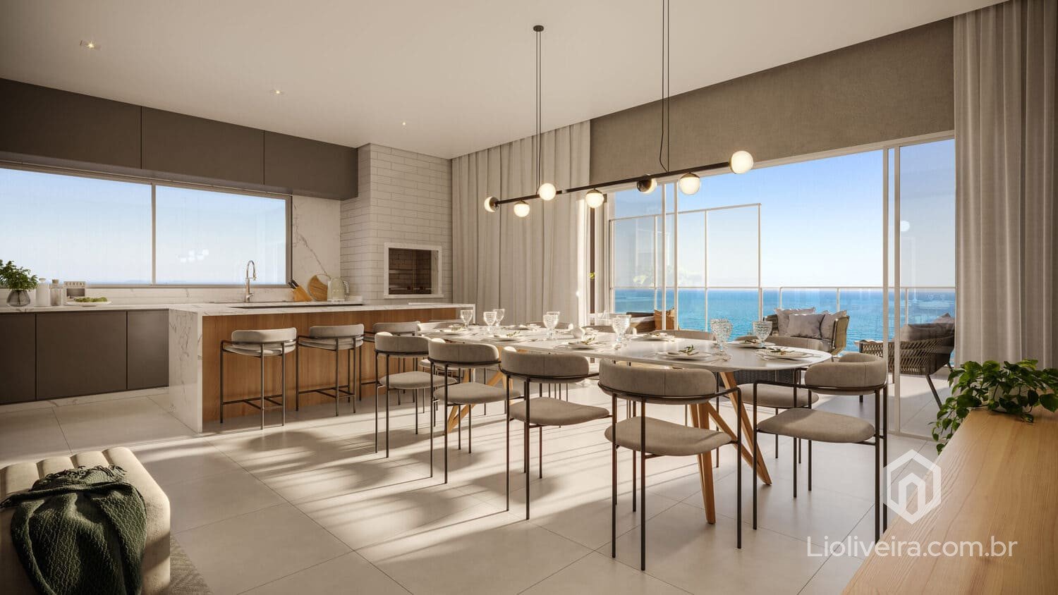 Assim, o apartamento combina sofisticação, conforto e uma vista privilegiada do mar.
